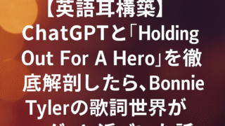 宅建 その他資格 【英語耳構築】ChatGPTと「Holding Out For A Hero」を徹底解剖したら、Bonnie Tylerの歌詞世界がグッと近づいた話 80年代の名曲「Separate Ways」で洋楽リスニングに目覚めた私が、次にチャレンジしたのはBonnie Tylerの『Holding Out For A Hero』。 この曲、映画やCMでもよく使われる熱量高めのパワフルな一曲なので... 2025.10.07 宅建 その他資格